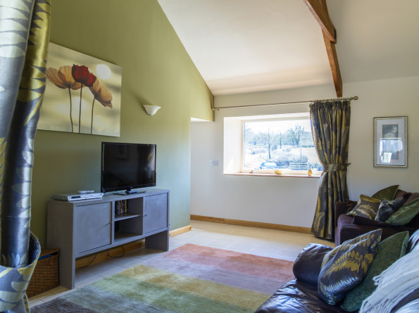 The Milking Parlour is our top self catering cottage converted from the old dairy and milking parlour, it exudes a contemporary style while incorporating the traditional character of the old beams and thick stonewalls. Egyptian cotton bed linen and luxury fluffy white towels combine for a hotel elegance with the informality of a self catering holiday.